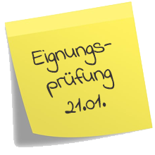 Die nächste Eignungsprüfung findet am Mittwoch, 21.01.2026 statt. Telefonische Anmeldung über das Sekretariat: 02572 2950