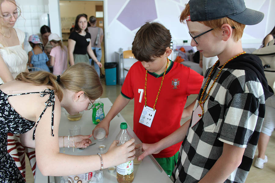 Am 6. Juni luden 18 Schülerinnen der BAfEP 19 Schülerinnen und Schüler der ASO zum Experimentieren in ihr Klassenzimmer, wo sie liebevoll gestaltete Stationen zu unterschiedlichen Themen, wie z.B. Magnetismus, Wasser oder Sinne, vorbereitet hatten, an denen nach Lust und Laune geforscht werden durfte. Eine bereichernde Begegnung für alle Beteiligten: Einerseits erweiterten die Kinder ihre Erfahrungen mit naturwissenschaftlichen Phänomenen, anderseits setzten die BAfEP-Schülerinnen ihr Wissen aus den Unterrichtsgegenständen Inklusive Pädagogik und Angewandte Naturwissenschaften in die Praxis um und übten sich in der fachlich fundierten Anleitung sowie Erklärung von Experimenten. Das mit Sorgfalt geplante Rahmenprogramm mit Forscherpass, Begrüßungsspiel und Gesang sorgte für gute Laune und eine entspannte Atmosphäre. Die vielen gelungenen Experimente brachten die Augen der jungen Forscherinnen und Forscher, aber auch jene der angehenden Pädagoginnen zum Strahlen.