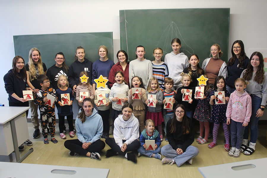 Sichtlich stolz präsentierten die Kinder ihre fertigen Nikolausbilder.