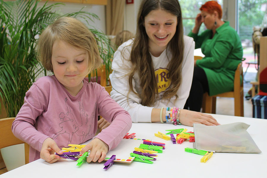 Die Schüler/innen der 1AK stellten im Rahmen ihres Praxisunterrichts Kluppen-Spiele her. Auftrag bzw. Ziel war neben einer ansprechenden und möglichst originellen Spielgestaltung natürlich die Förderung unterschiedlicher Kompetenzen der Kinder (z. B. Förderung der Feinmotorik, mathematische Bildung, Farben erkennen und benennen). Im Mai hatten die Schüler/innen dann die Gelegenheit, ihre Spiele mit Kindern im Praxiskindergarten auszuprobieren und konnten dort Erfolgserlebnisse verzeichnen.