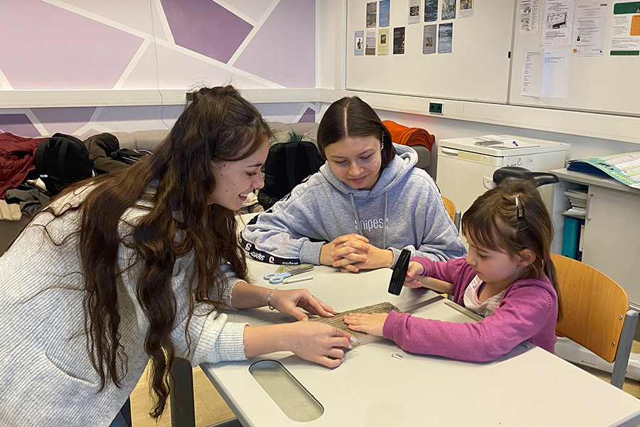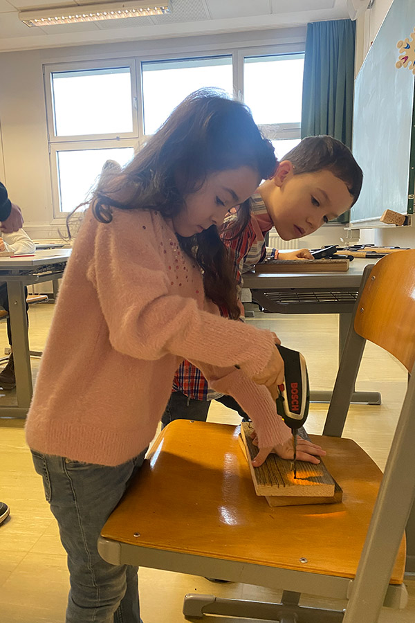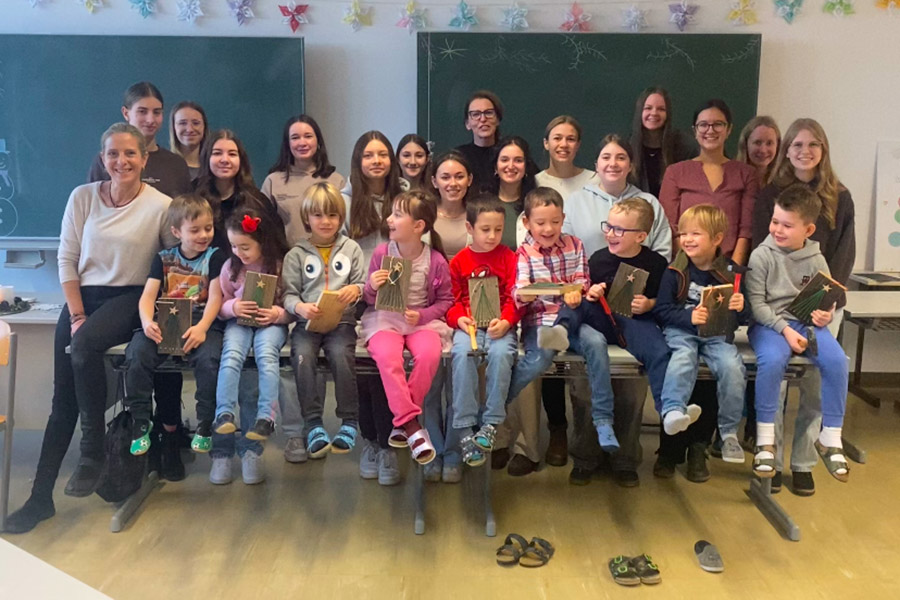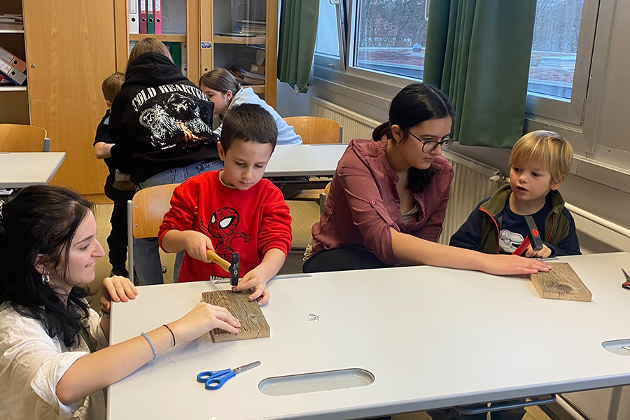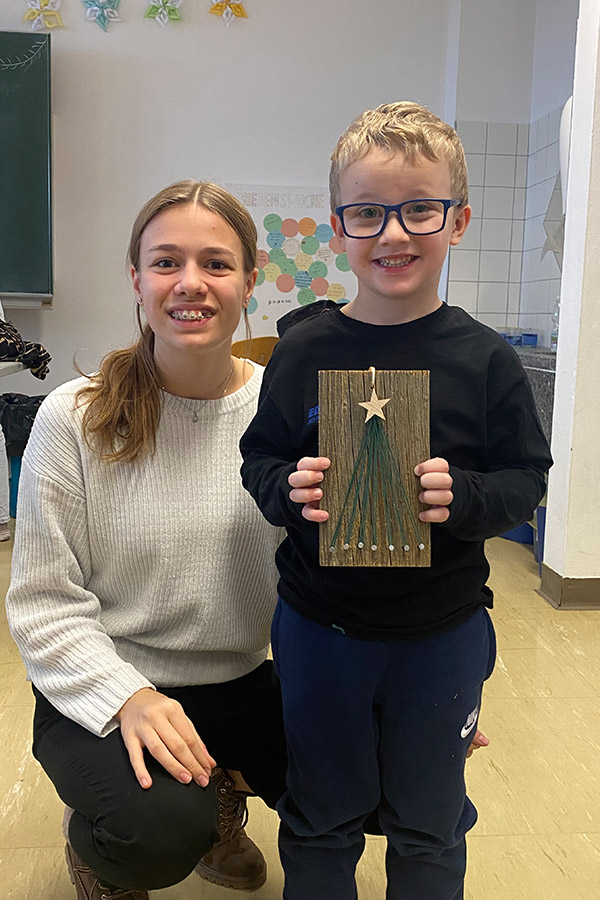 Im Rahmen einer Kooperation mit dem Praxiskindergarten stellten die SchülerInnen der 4AK und Mag. Karin Weidlich am 11. Dezember mit Kindern im letzten Kindergartenjahr Weihnachtsbaum-Bilder her. Dabei kamen Holz, Bohrmaschine, Hammer, Nägel sowie Wolle zum Einsatz und die Kinder konnten sich in Konzentration, Auge-Hand-Koordination, Feinmotorik und Dosierung der eigenen Kraft üben. Es entstanden ansprechende Bilder, welche die Kinder dann auch selbstbewusst präsentierten.